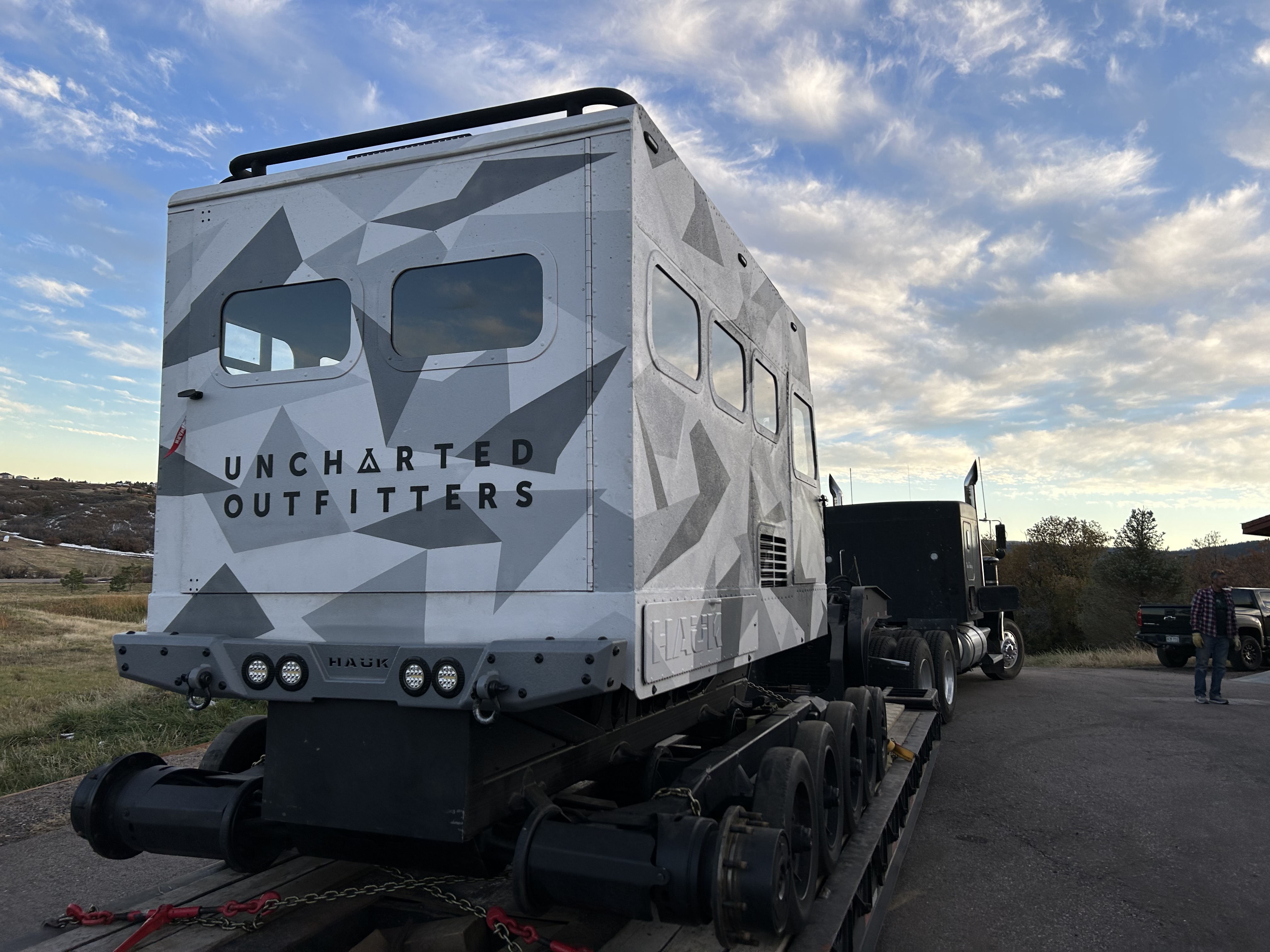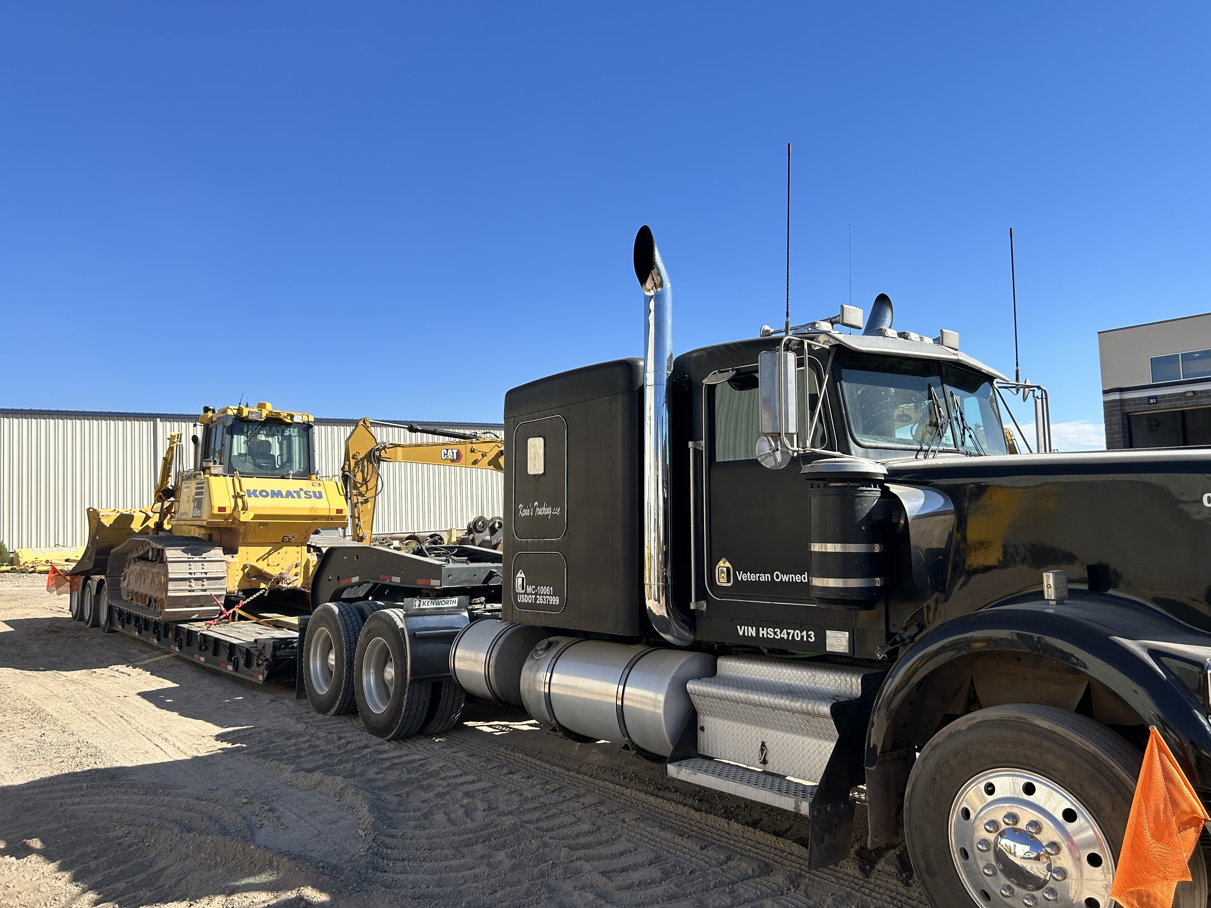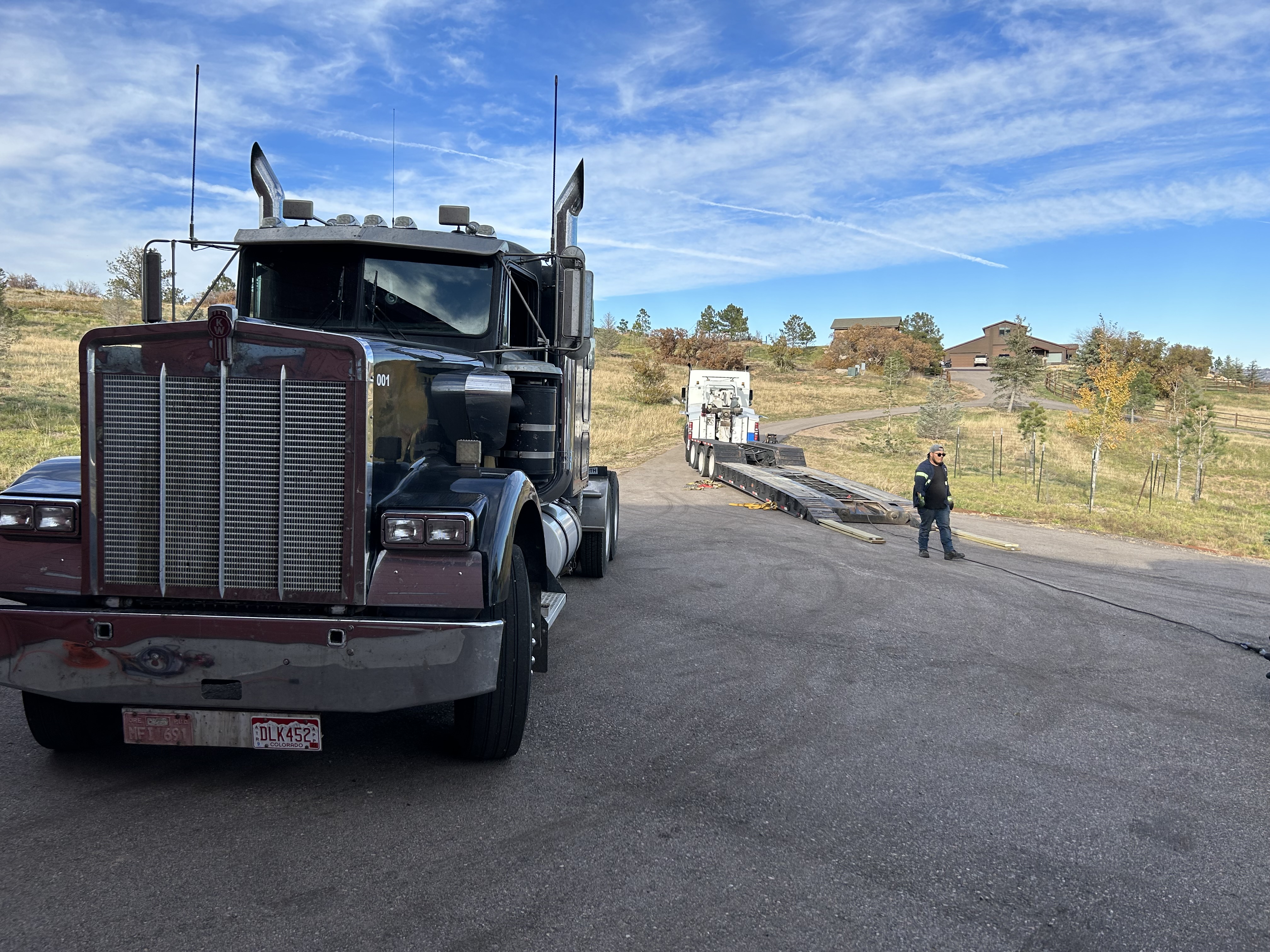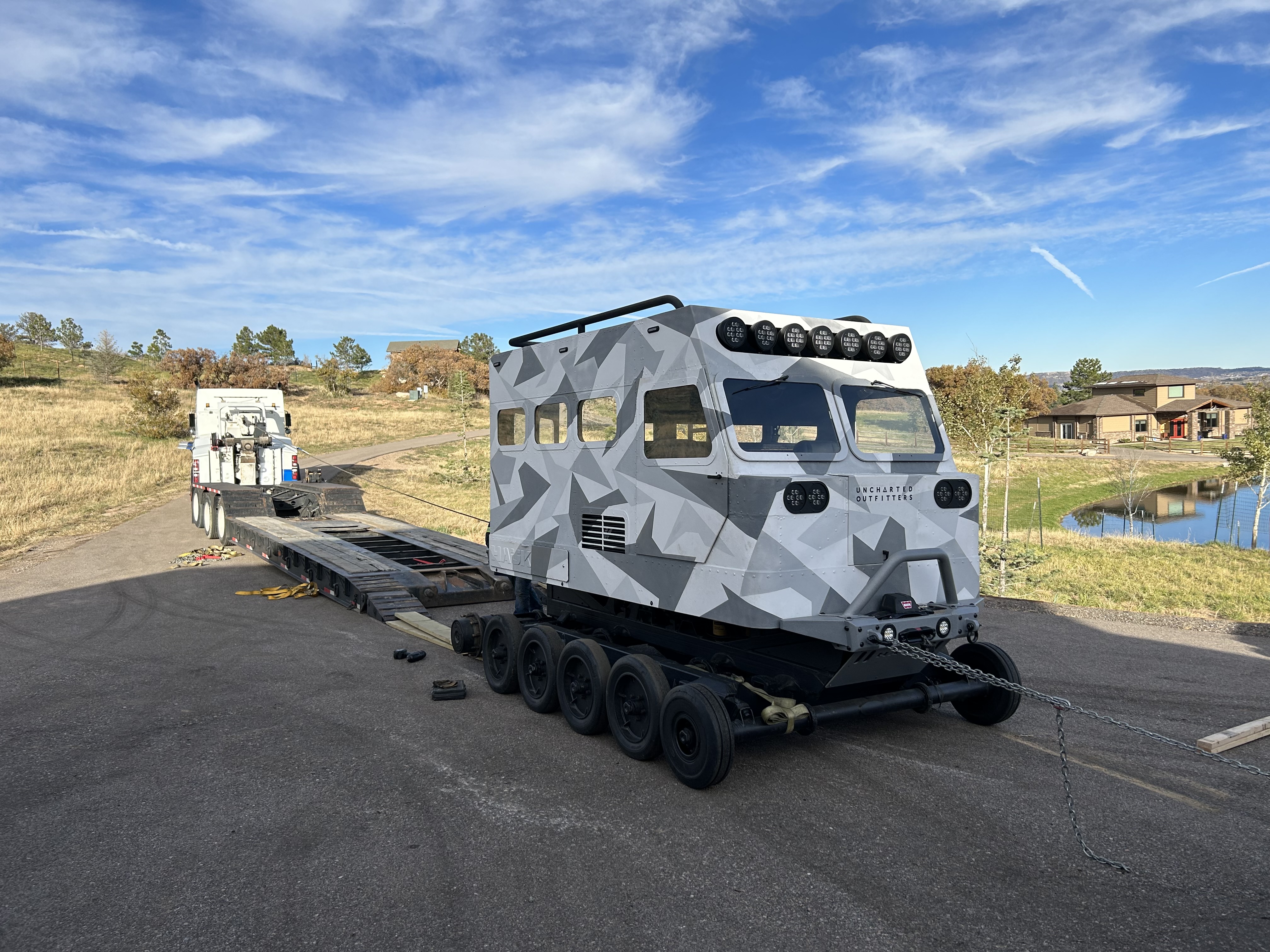 The Snow Cats tracks were removed so we had to carefully winch the heavy machine on the lowboy "RGN" trailer.