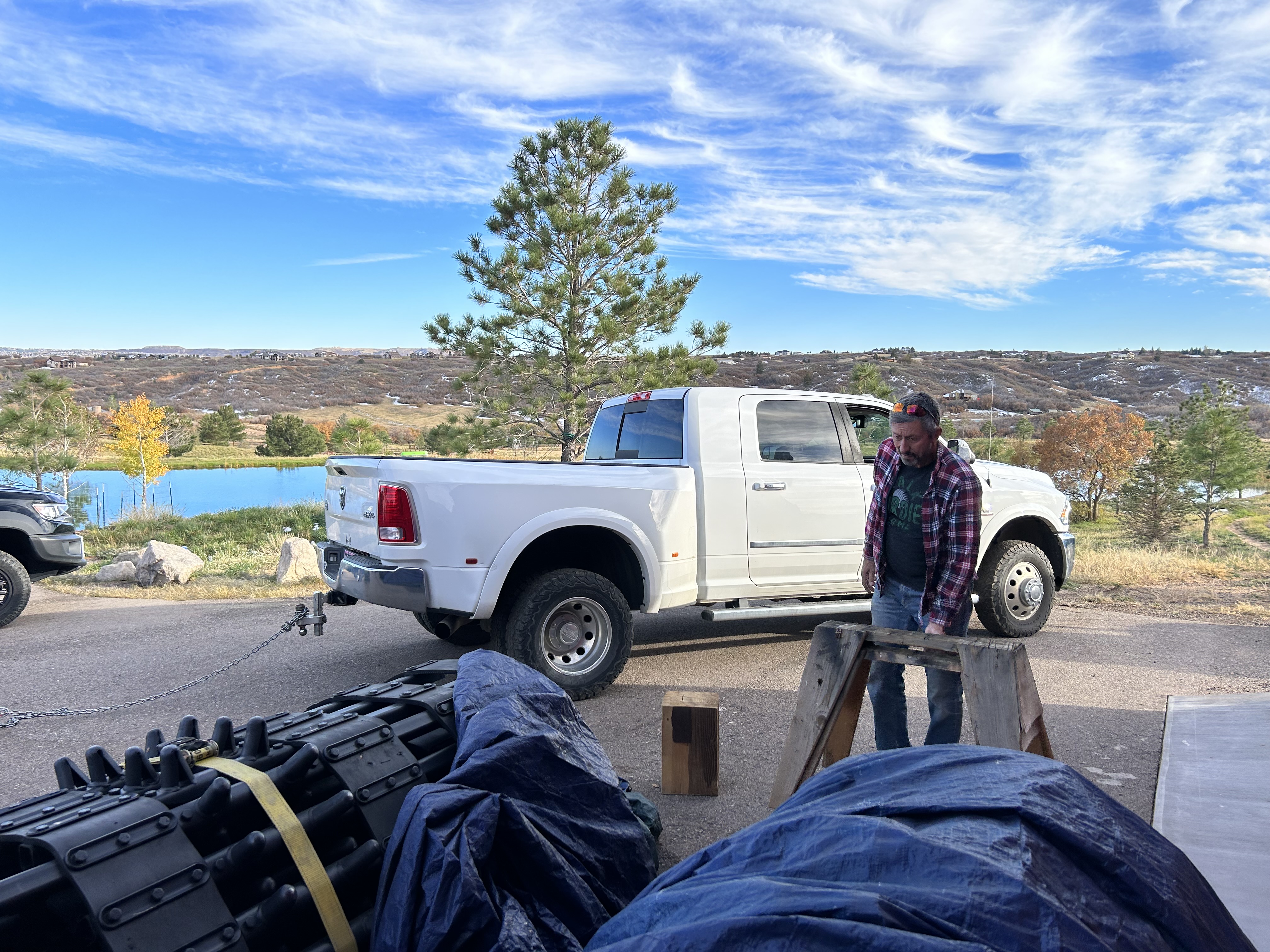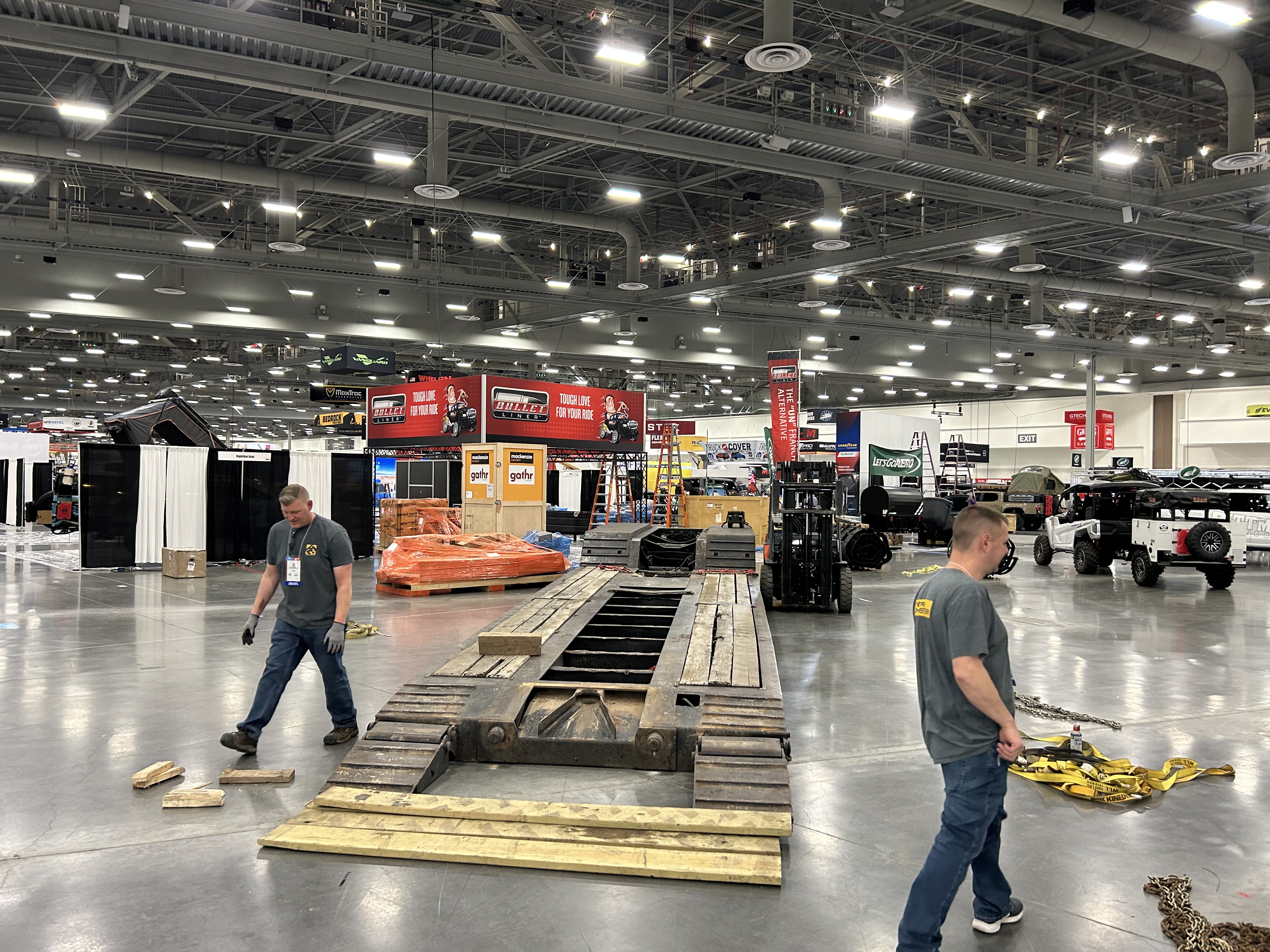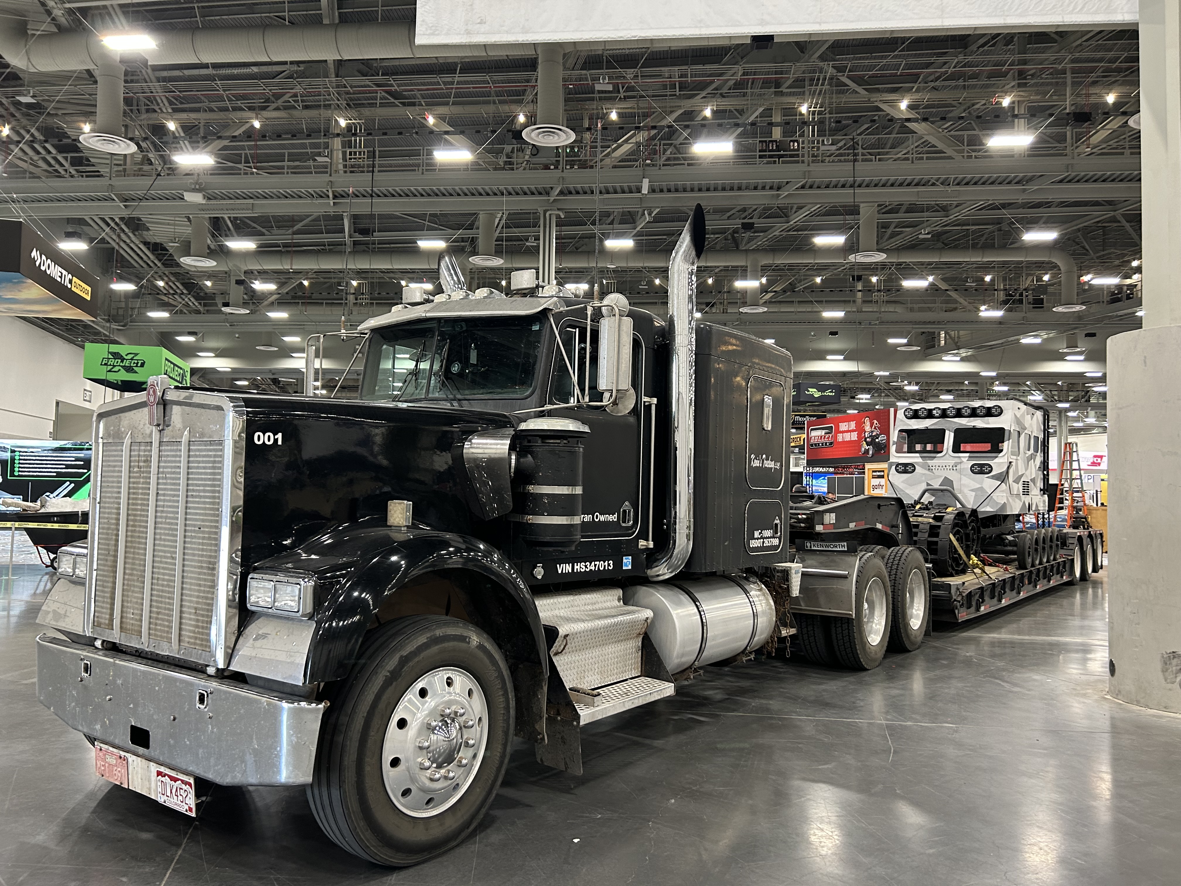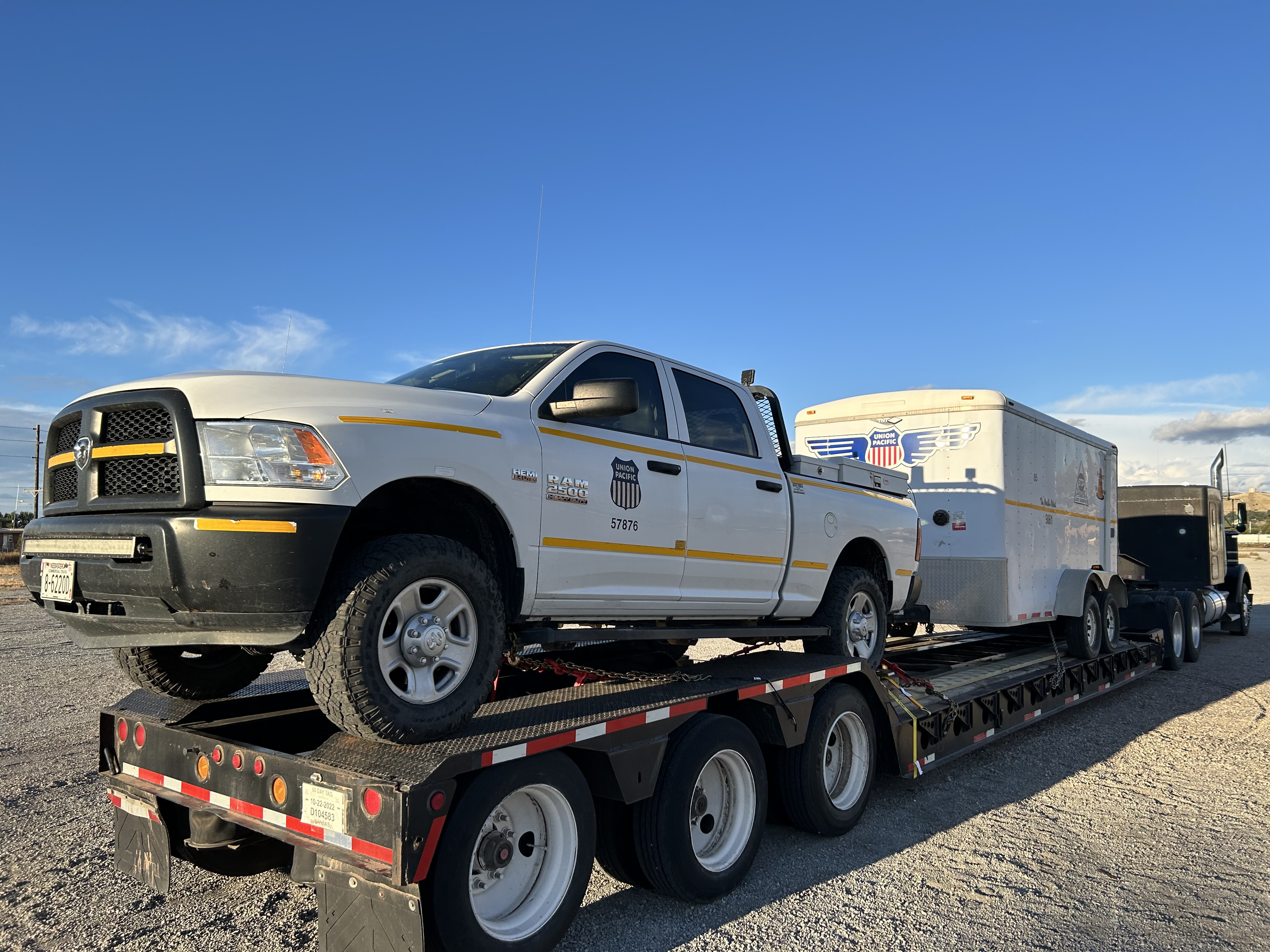 The Snow Cats tracks were removed so we had to carefully winch the heavy machine on the lowboy "RGN" trailer.