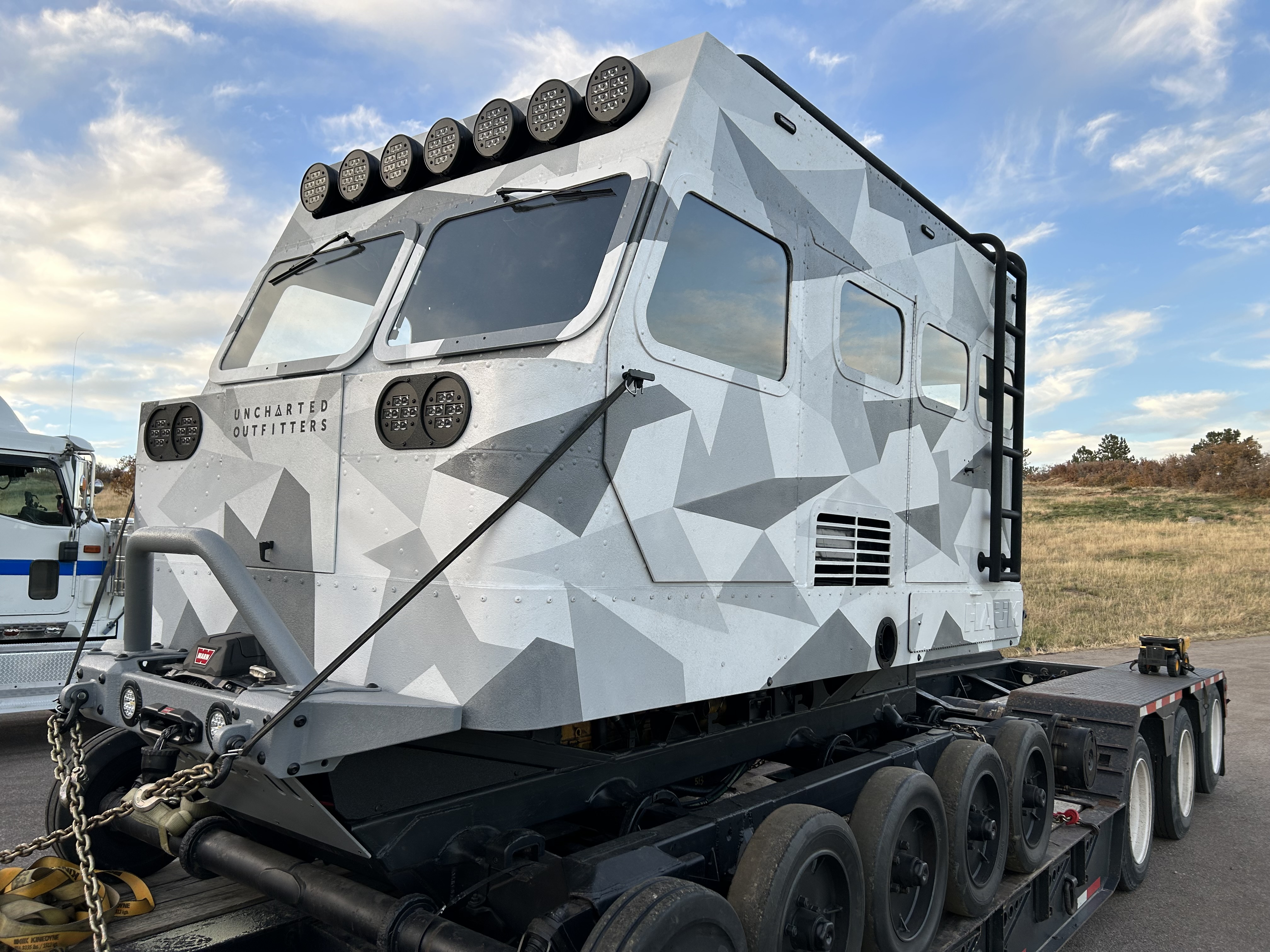 This is a delicate operation since the Snow Cat was moving on its rubber bogies and has no brakes or steering without its tracks.