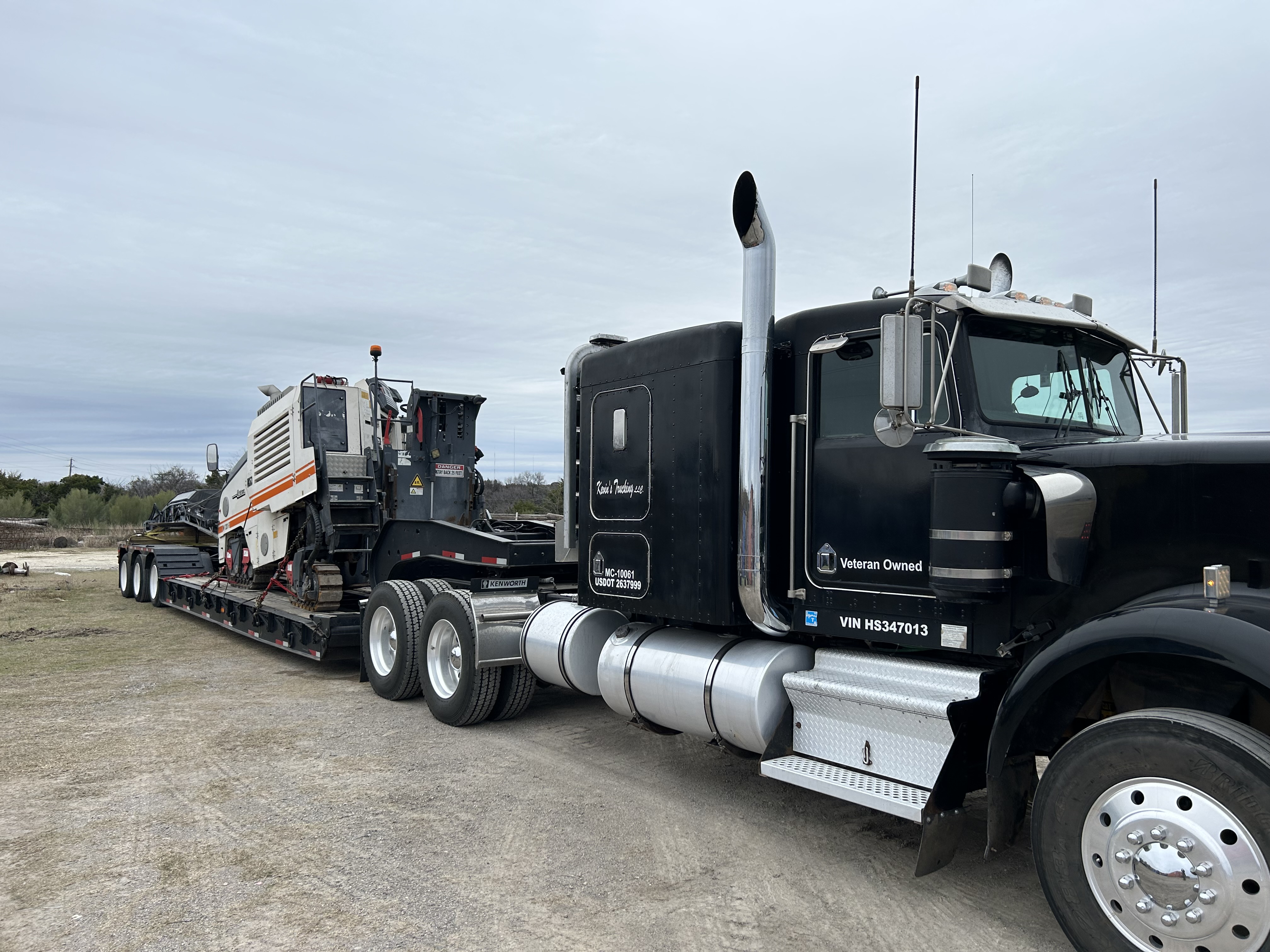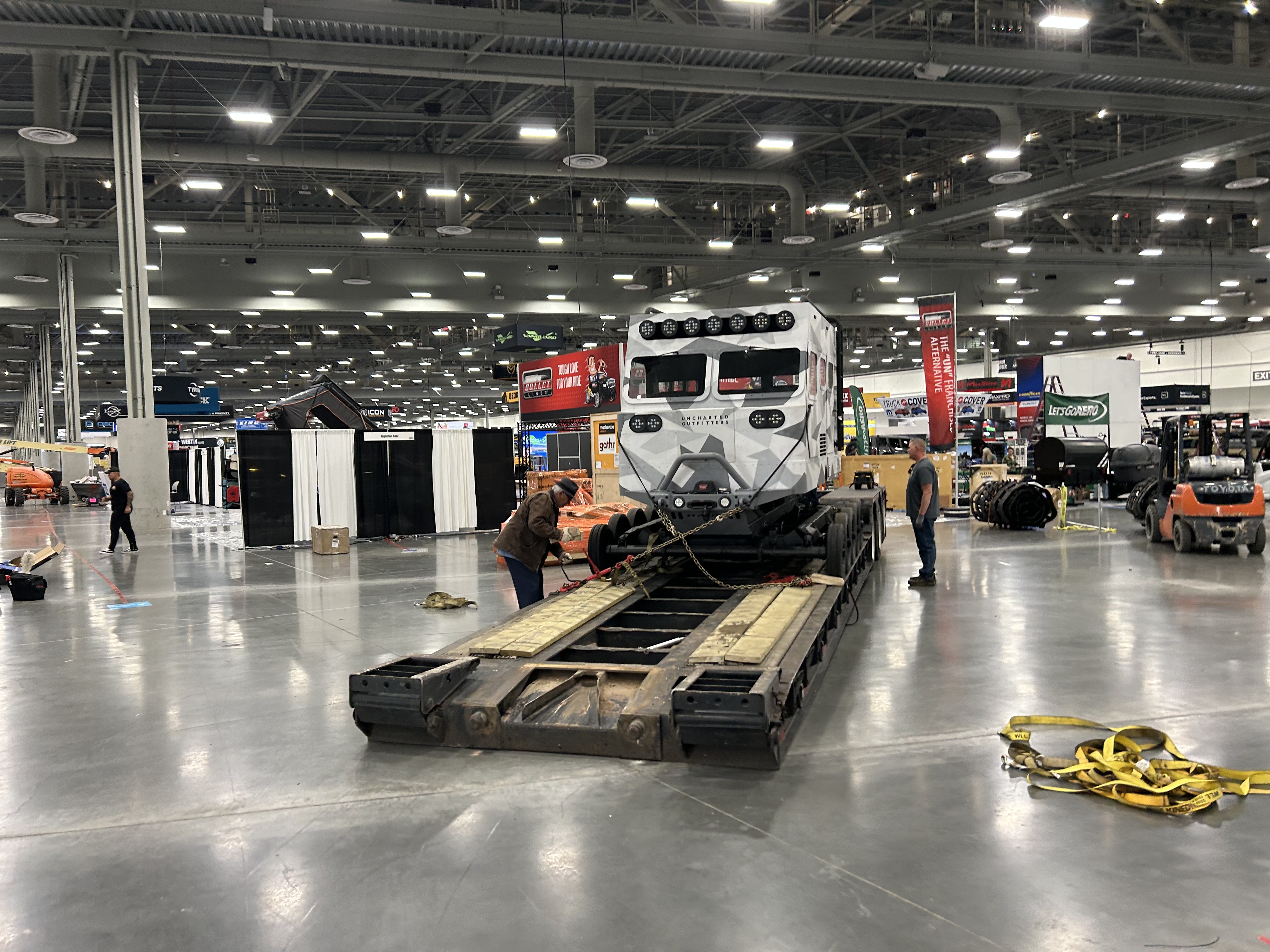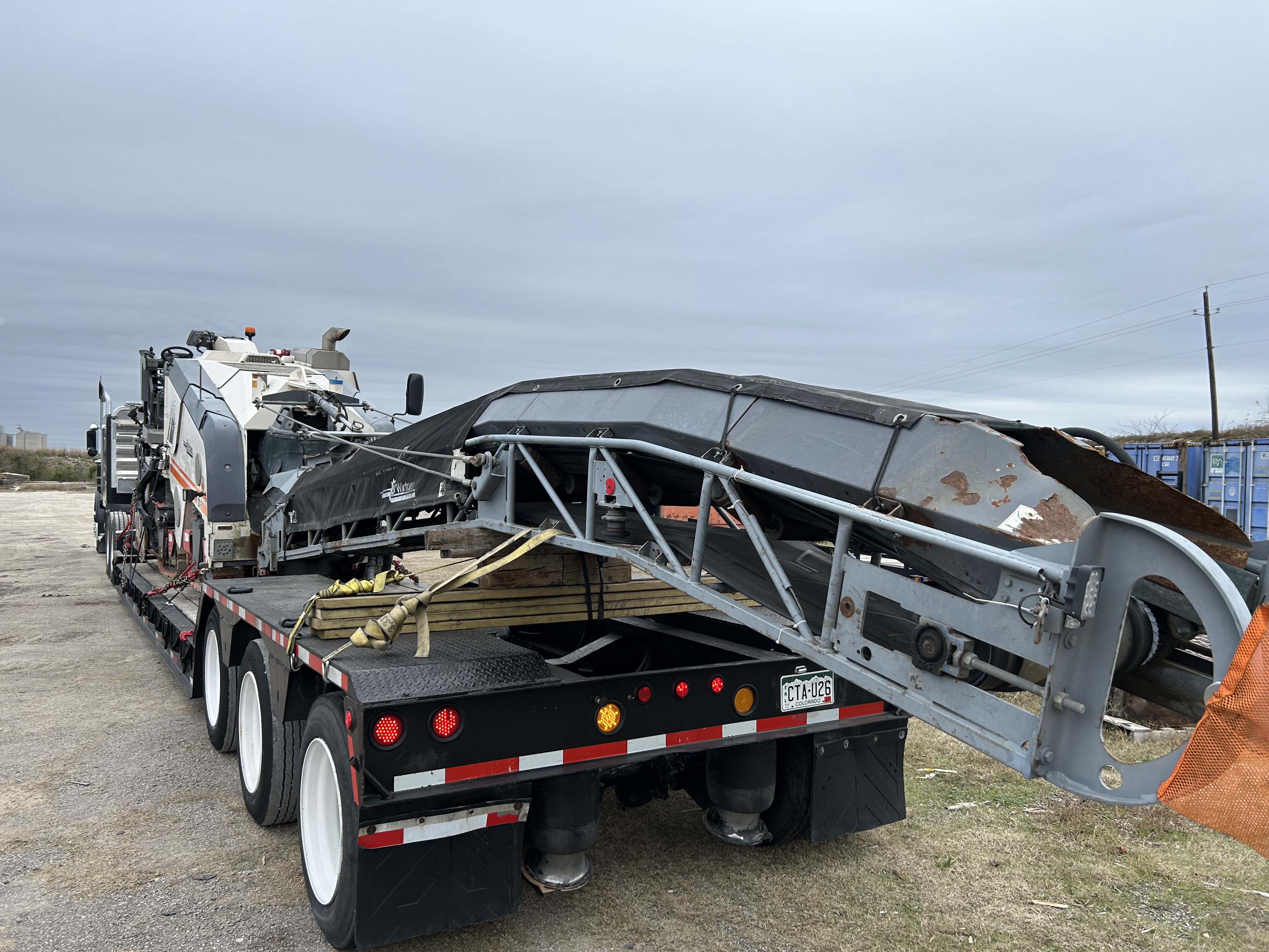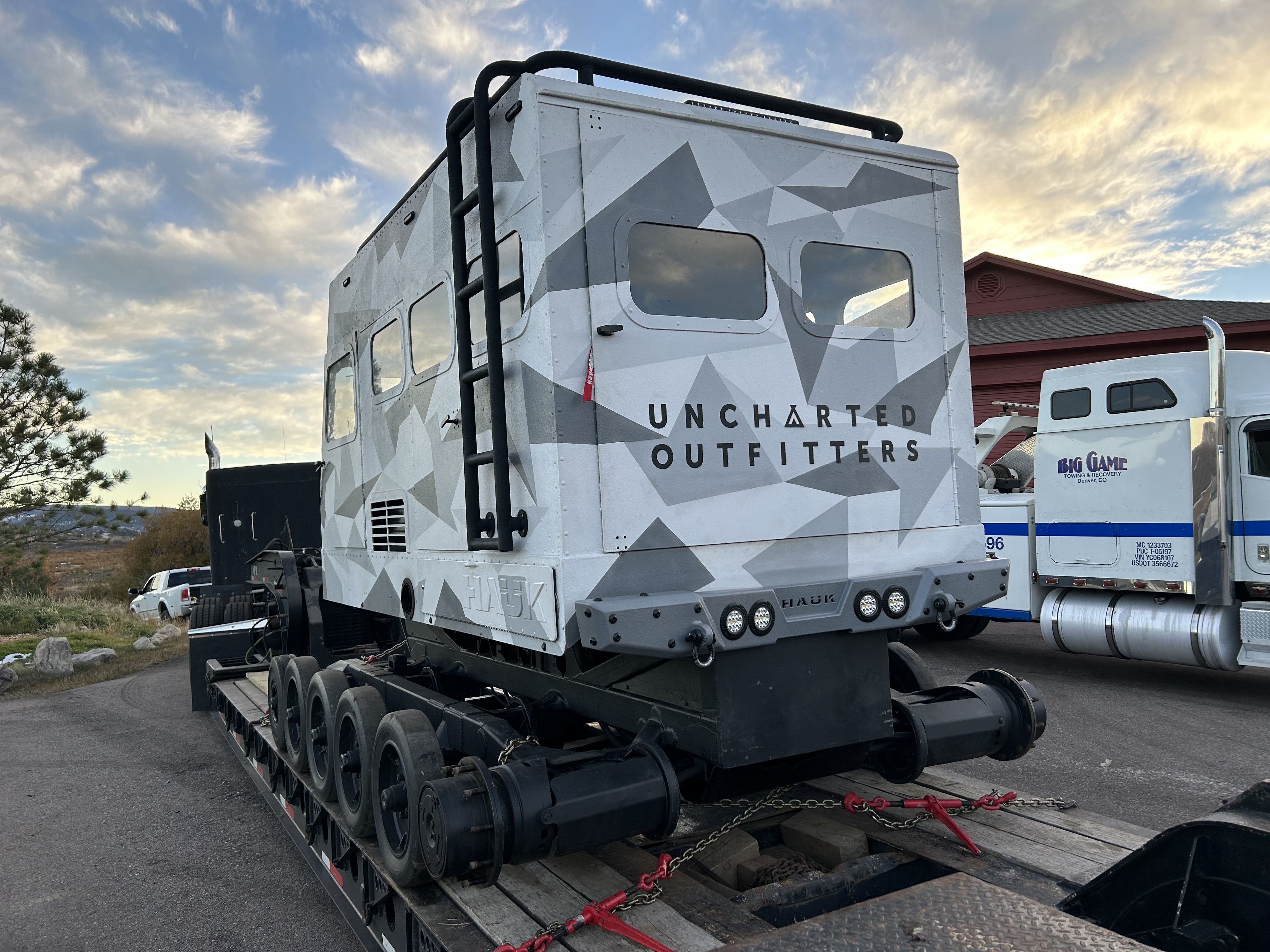 The Snow Cats tracks were removed so we had to carefully winch the heavy machine on the lowboy "RGN" trailer.